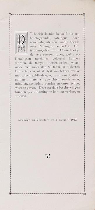 Prospekt für Schreibmaschine und Büromöbel Remington Nr. Dutch 15M-Bf6626-3-27