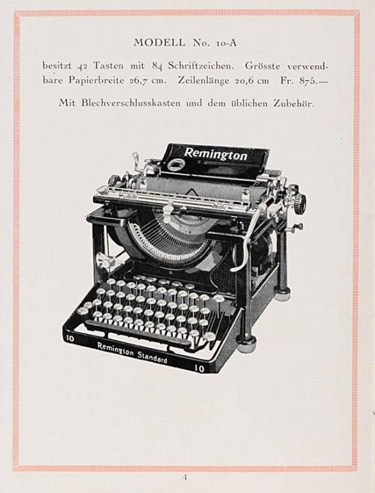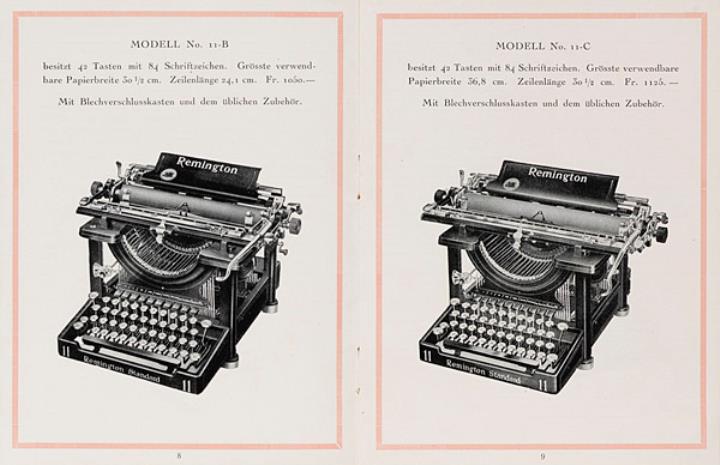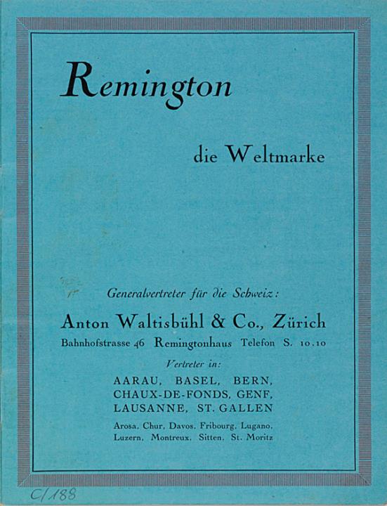 Prospekt für Schreibmaschinen Remington Generalvertretung für die Schweiz: Anton Waltisbühl, Zürich Nr. R.211.V.22.3000, zwei Exemplare (eines fotokopiert/gebunden)