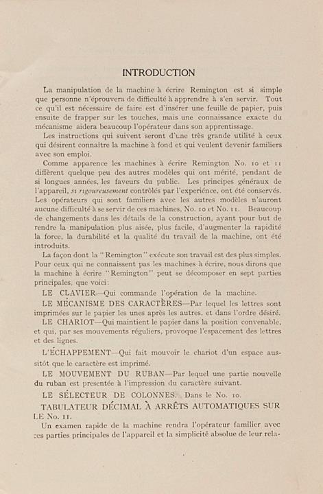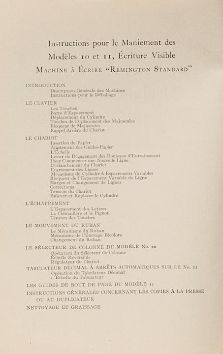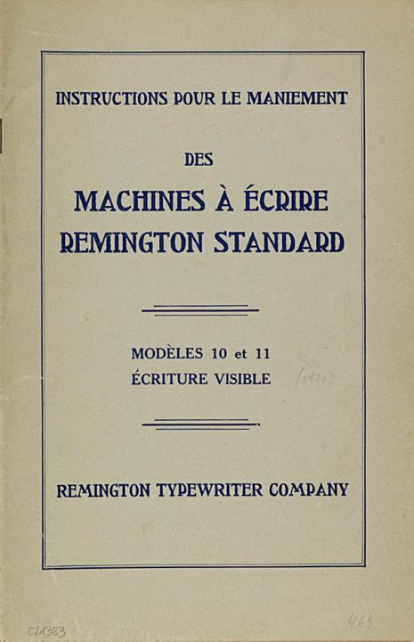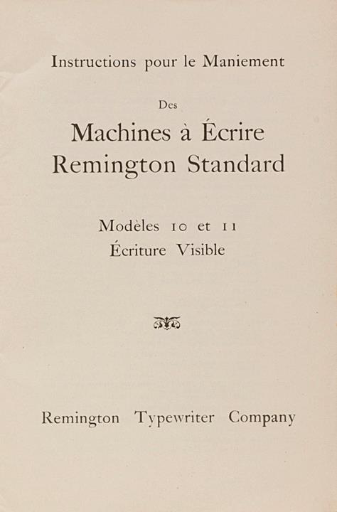 Instructions pour le maniement des machine à écrire Remington Standard modèles 10 et 11 écriture visible