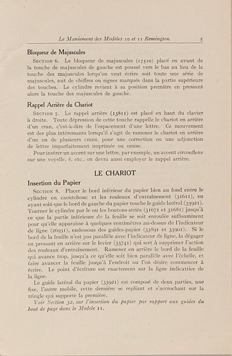 Bedienungsanleitung in französischer Sprache für Schreibmaschine Remington 10 und 11
