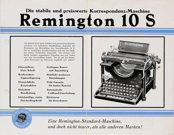 Faltprospekt für Schreibmaschine Remington Spezial 10/S Die stabile und preiswerte Korrespondenzmaschine