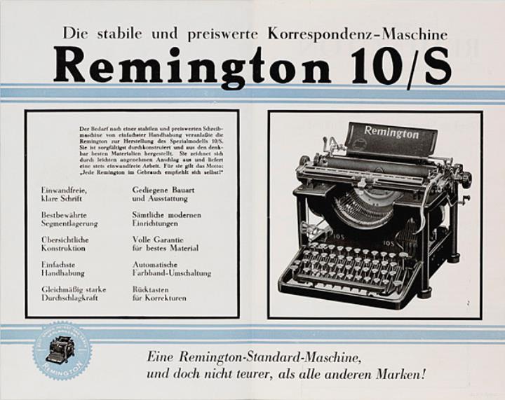 Faltprospekt für Schreibmaschine Remington Spezial 10/S Die stabile und preiswerte Korrespondenzmaschine Nr. D103/4-P/6.32