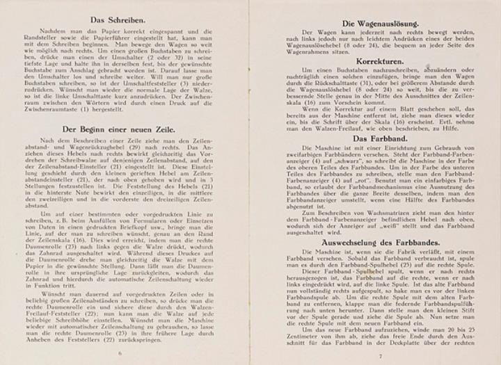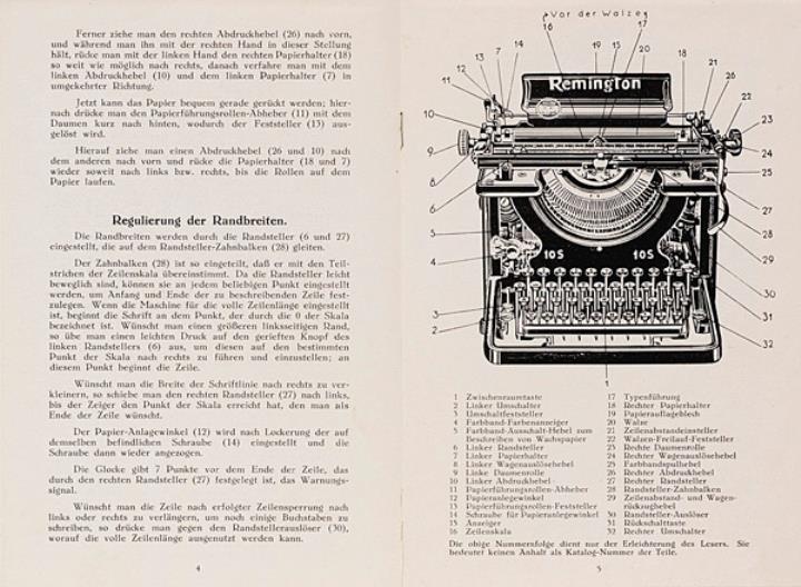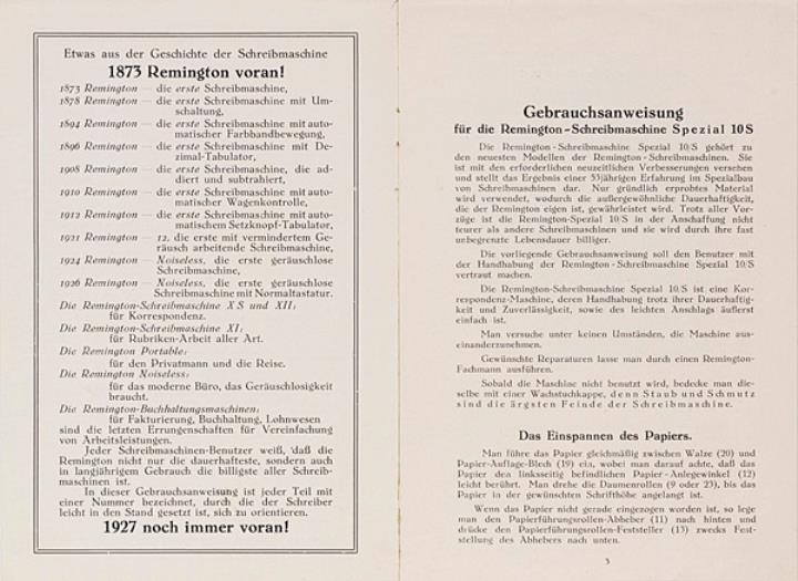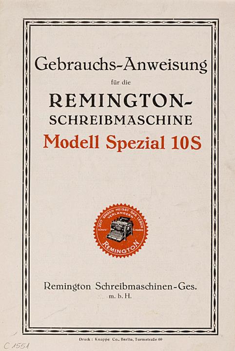 Gebrauch-Anweisung für die Remington-Schreibmaschine Modell Spezial 10S