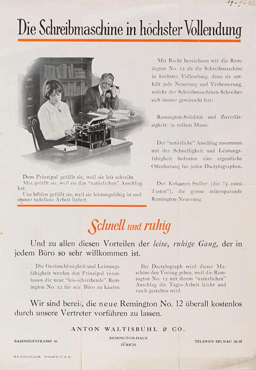 Faltprospekt für Schreibmaschine Remington 12 Nr. BF-5772-4-23-20-M