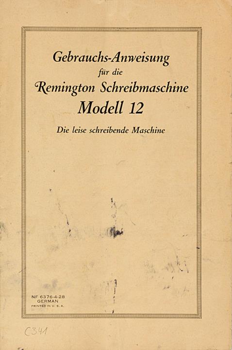 Bedienungsanleitung für Schreibmaschine Remington 12 Die leise schreibende Maschine Nr. NF6376-4-28