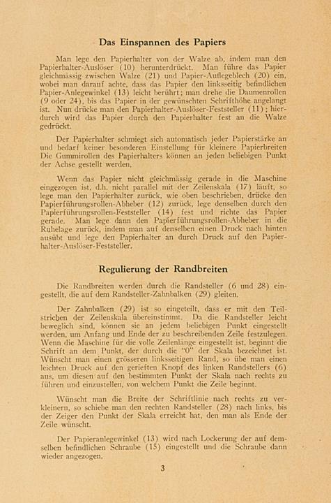 Gebrauchs-Anweisung für die Remington Schreibmaschine Modell 12