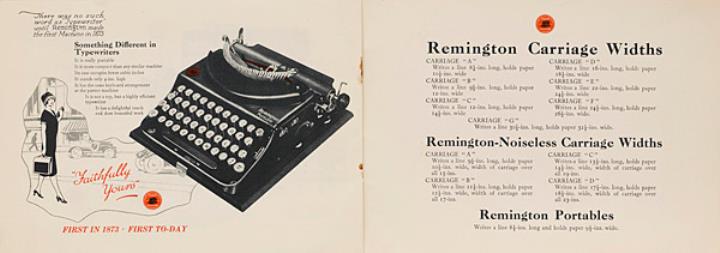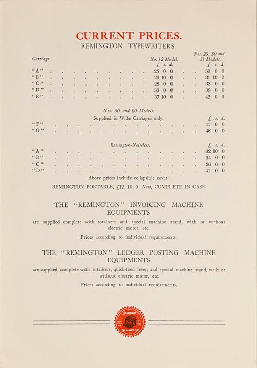 Prospekt für Schreibmaschine Remington; beiliegend Preis- und Filialliste