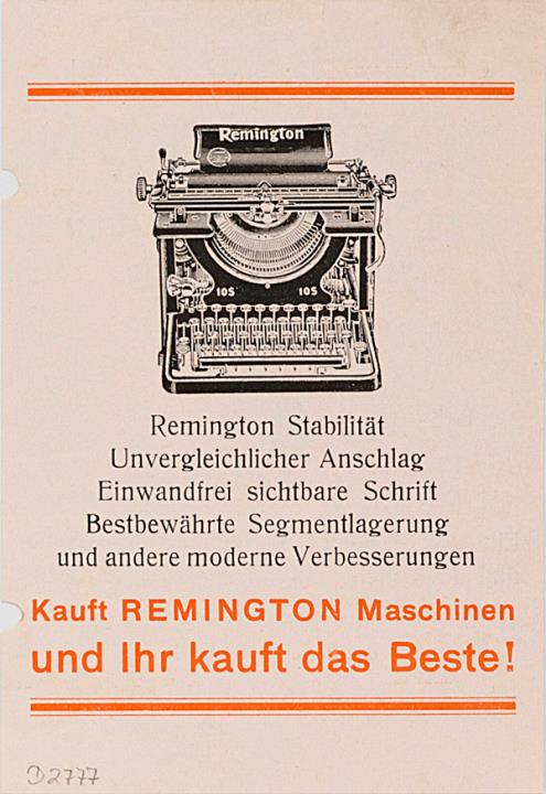 Next to literature on the history of technology, of the typewriter and the office, the Archive holds patent letters, textbooks and instruction manuals as well as historical postcards, letters, photographs and various kinds of advertising (leaflets and brochures, advertising stamps, newspaper ads, posters and signs, promotional gifts).
