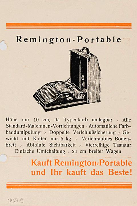 Next to literature on the history of technology, of the typewriter and the office, the Archive holds patent letters, textbooks and instruction manuals as well as historical postcards, letters, photographs and various kinds of advertising (leaflets and brochures, advertising stamps, newspaper ads, posters and signs, promotional gifts).