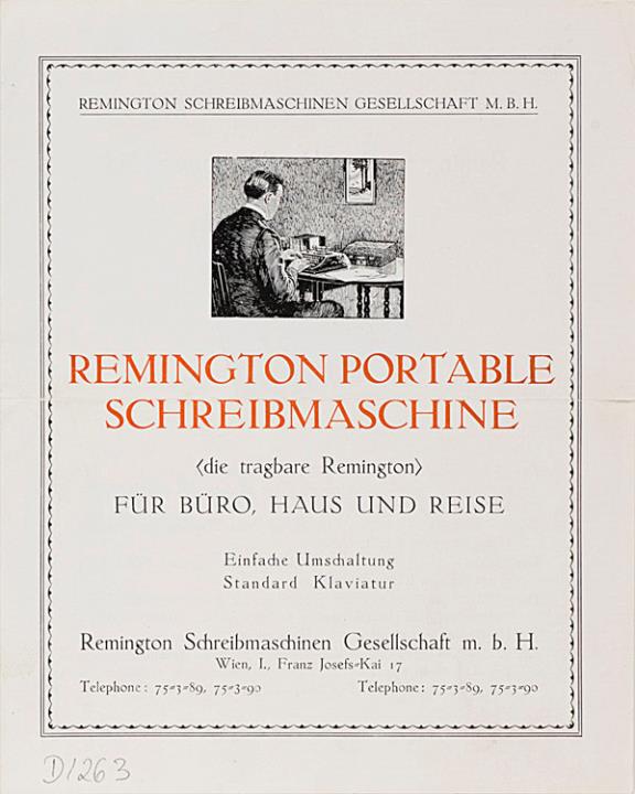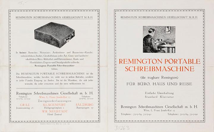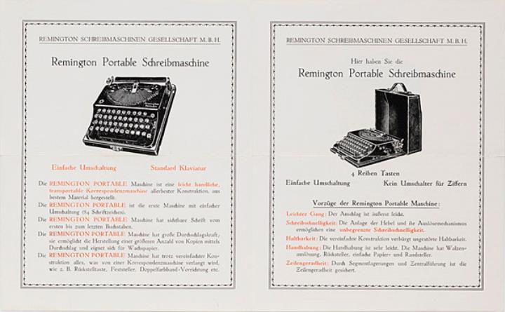 Faltprospekt für Schreibmaschine Remington Portable (die tragbare Remington) für Büro, Haus und Reise Nr. I.25-168