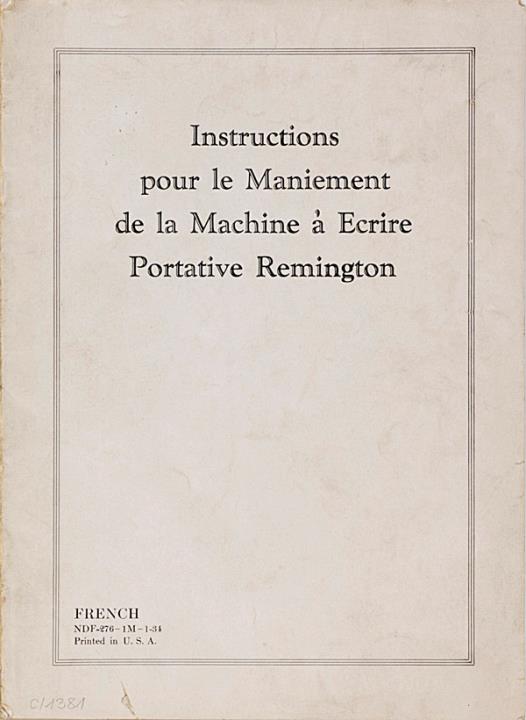 Bedienungsanleitung in französischer Sprache für Schreibmaschine Remington Portable Nr. NDF 276-1M-1-34