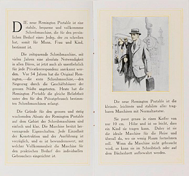 Prospekt für Schreibmaschine Remington Portable Die anerkannt bestverkäuflichste und populärste Maschine Nr. Df 6340-8-27-50M