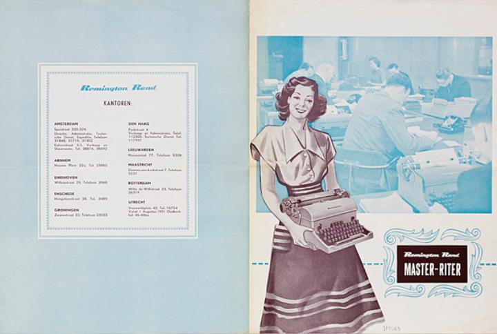 Next to literature on the history of technology, of the typewriter and the office, the Archive holds patent letters, textbooks and instruction manuals as well as historical postcards, letters, photographs and various kinds of advertising (leaflets and brochures, advertising stamps, newspaper ads, posters and signs, promotional gifts).