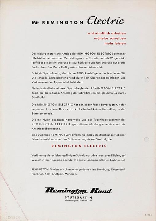 Prospekt für Schreibmaschine Remington Electric Nr. B.002 53