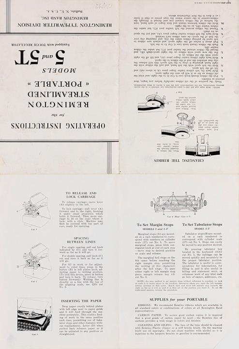 Operating Instructions for the Remington Streamlined Portable Models 5 and 5T