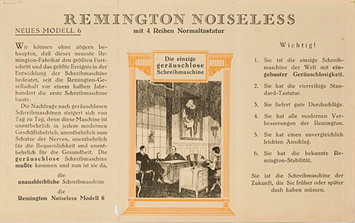 Faltprospekt für Schreibmaschine Remington 6 Noiseless Nr. BXF 6150-6-26-60M