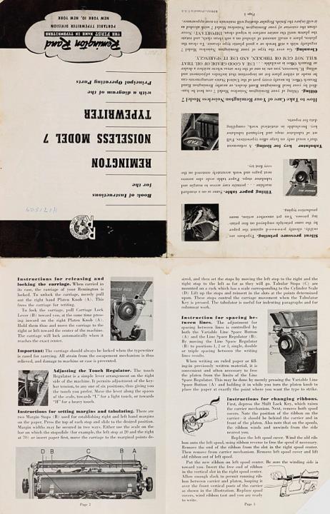 Book of Instructions for the Remington Noiseless Model 7 Typewriter