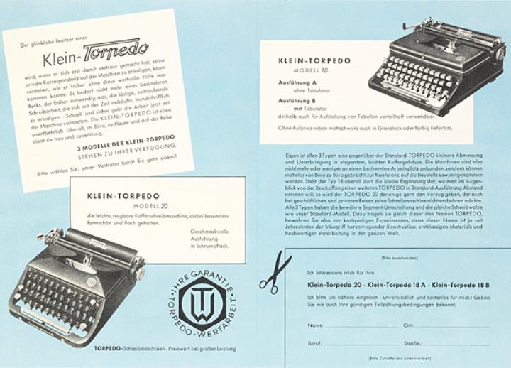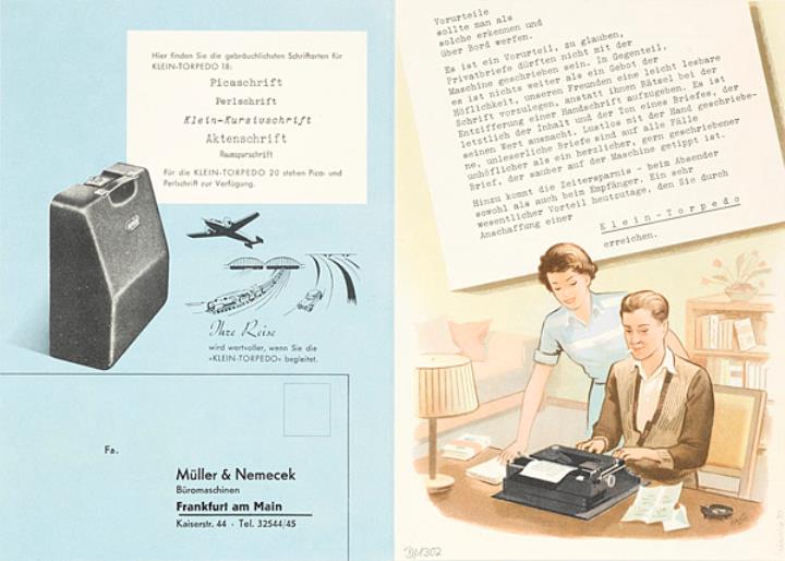 Next to literature on the history of technology, of the typewriter and the office, the Archive holds patent letters, textbooks and instruction manuals as well as historical postcards, letters, photographs and various kinds of advertising (leaflets and brochures, advertising stamps, newspaper ads, posters and signs, promotional gifts).