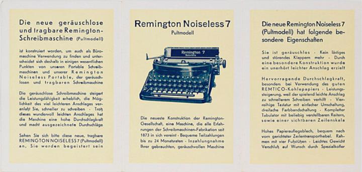 Faltprospekt für Schreibmaschine Remington 7 Noiseless Nr. D236/2-UZ/2.33.