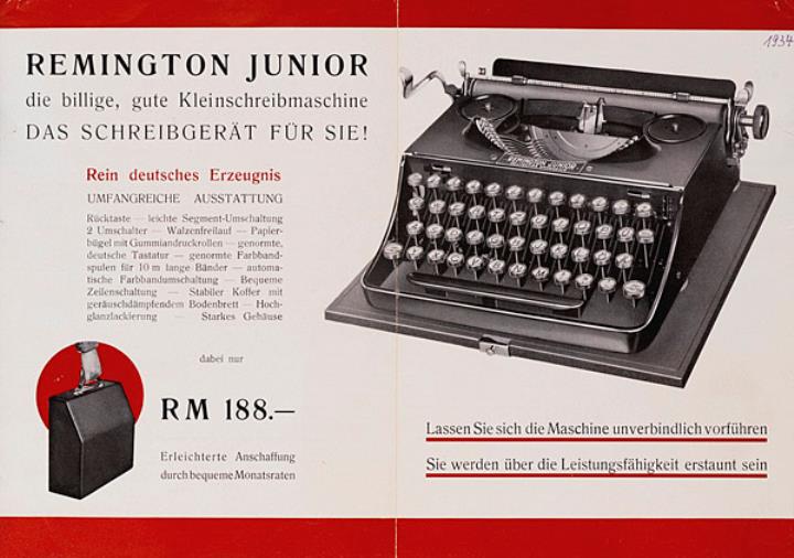 Faltprospekt für Schreibmaschine Remington Junior Nr. D31/AK/3.34