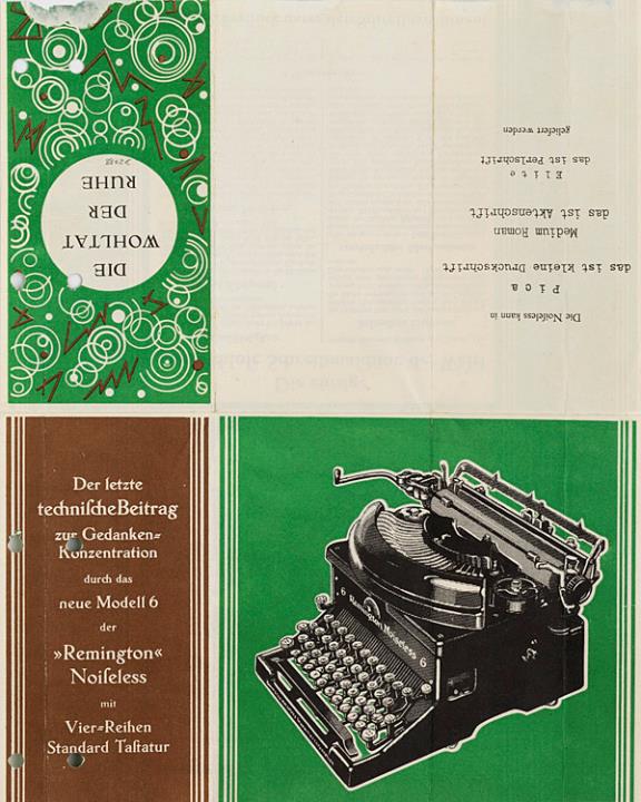 Faltprospekt für Schreibmaschine Remington 6 Noiseless