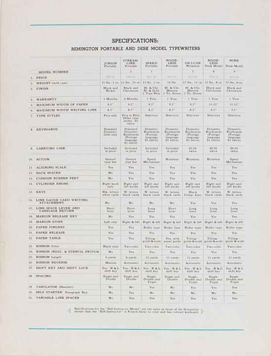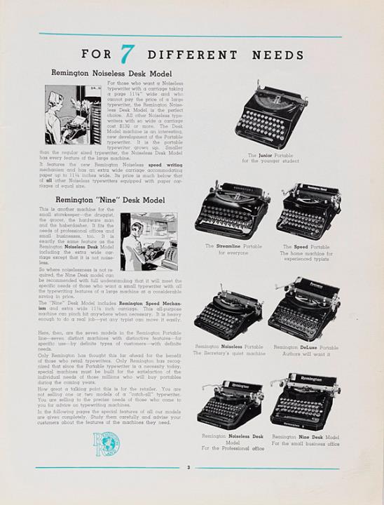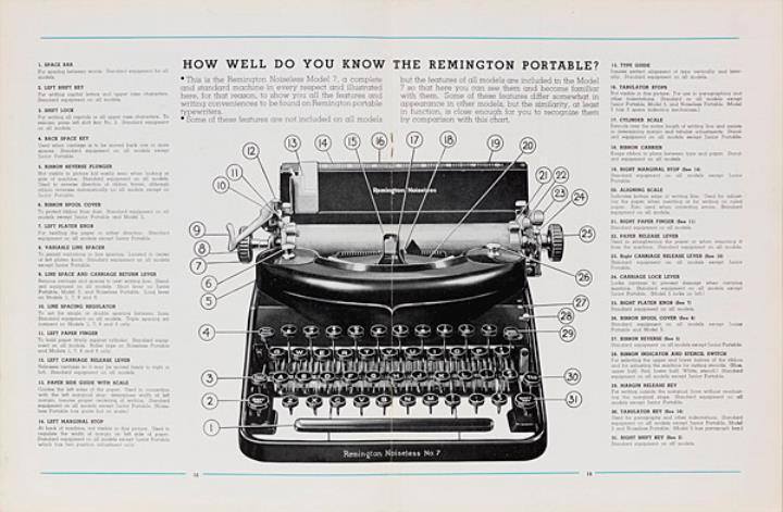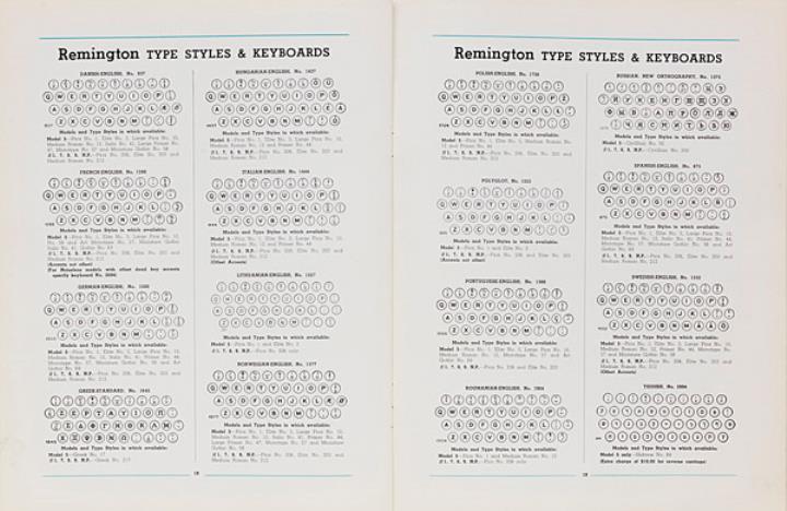 Katalog für Schreibmaschine Remington; mit Ratenplan, Tastatur- und Schriftartenverzeichnis Nr. D7235B 3-36 17M Datum handschriftlich vermerkt