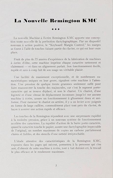 Instructions pour le maniement de la nouvelle machine à écrire Remington KMC