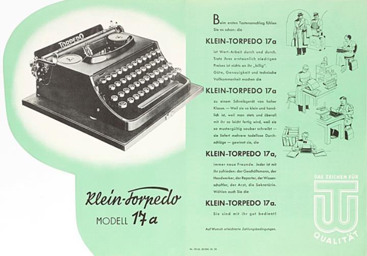 Faltprospekt für Schreibmaschine Torpedo 17a Nr. 10122.50000.10.39