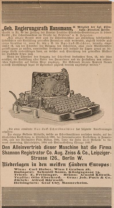 Werbeanzeige für Schreibmaschine Bar-Lock monochrom