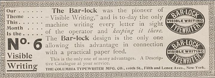 Werbeanzeige für Schreibmaschine Bar-Lock 6 monochrom