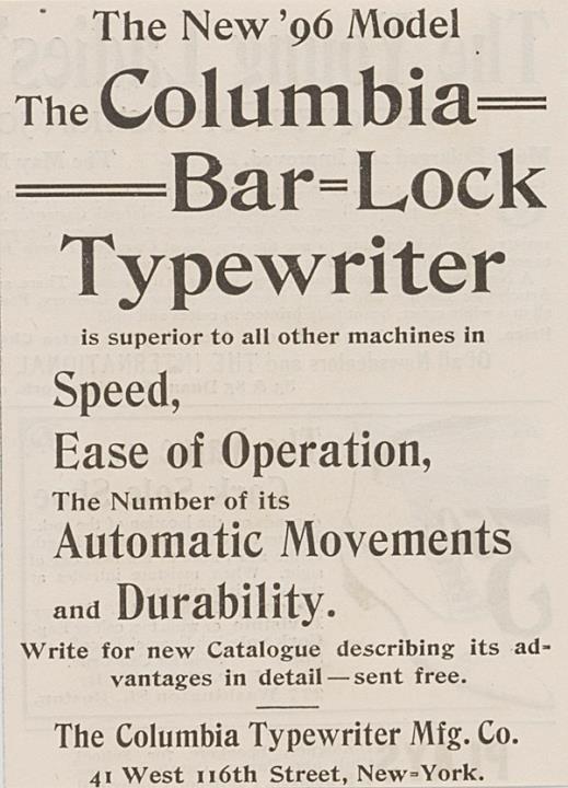 Werbeanzeige für Schreibmaschine Bar-Lock monochrom