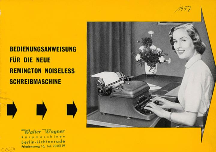 Next to literature on the history of technology, of the typewriter and the office, the Archive holds patent letters, textbooks and instruction manuals as well as historical postcards, letters, photographs and various kinds of advertising (leaflets and brochures, advertising stamps, newspaper ads, posters and signs, promotional gifts).