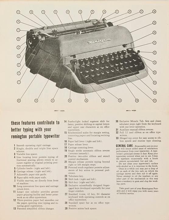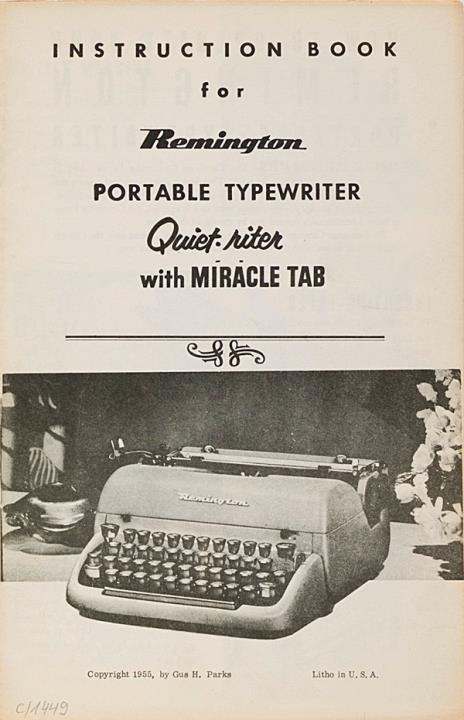 Instruction book for Remington Portable Typewriter Quiet.riter with Miracle Tab