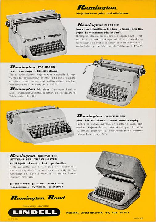 Prospekt in finnischer Sprache für Schreibmaschine Remington Electric Nr. 10KM1257