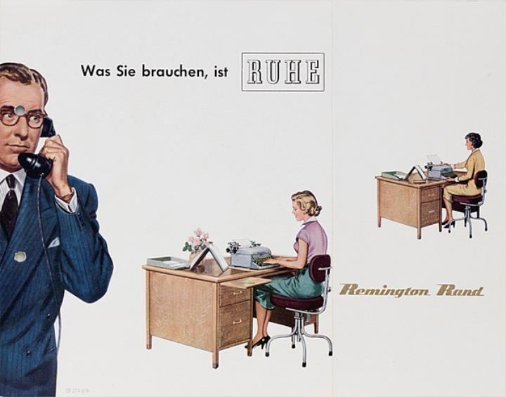 Next to literature on the history of technology, of the typewriter and the office, the Archive holds patent letters, textbooks and instruction manuals as well as historical postcards, letters, photographs and various kinds of advertising (leaflets and brochures, advertising stamps, newspaper ads, posters and signs, promotional gifts).