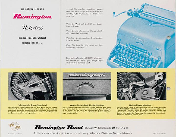 Faltprospekt für Schreibmaschine Remington Noiseless Nr. PBY0195/40M/655