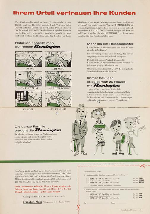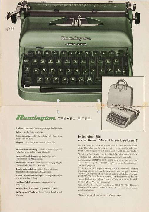 Faltprospekt für Schreibmaschine Remington Quiet-Riter und Travel-Riter Datum handschriftlich vermerkt