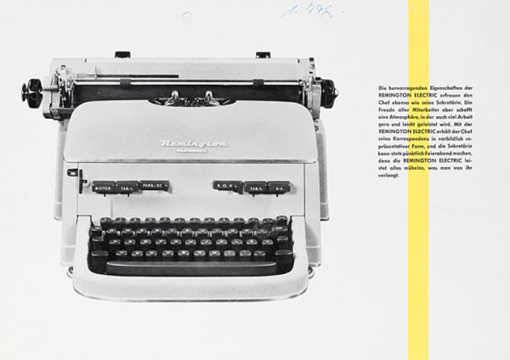 Prospekt für Schreibmaschine Remington Electric Datum handschriftlich vermerkt