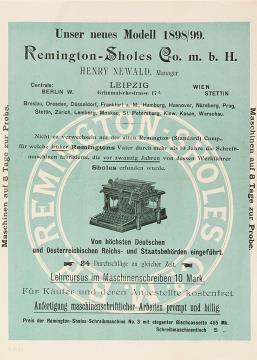 Unser neues Modell 1898/99 Remington-Sholes Co. m. b. H.