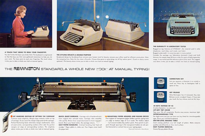 Faltprospekt für Schreibmaschine Remington Standard ...the one that seems to read your fingertips. Nr. ST3325 Rev.-1 (967100)