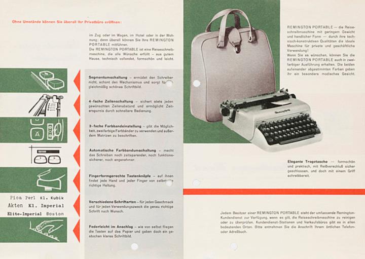 Faltprospekt für Schreibmaschine Remington Portable Datum handschriftlich vermerkt