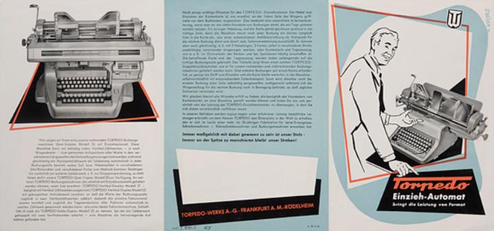 Faltprospekt für Schreib- und Buchungsmaschine Torpedo Nr. d.30 3.54