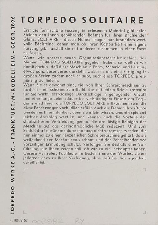 Prospekt für Schreibmaschine Torpedo Nr. 4.100.2.53
