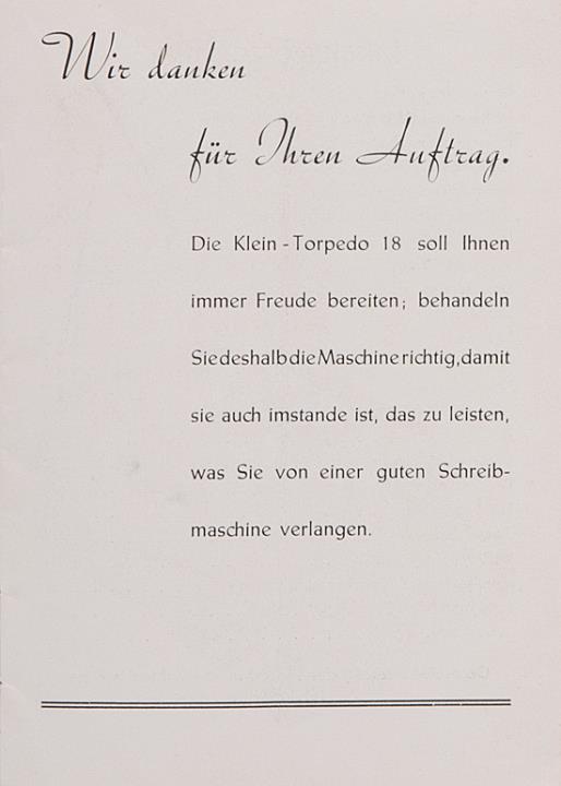 Bedienungsanleitung für Schreibmaschine Torpedo 18 Nr. e 4.39