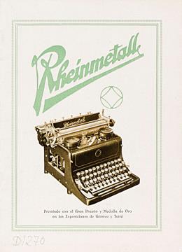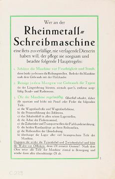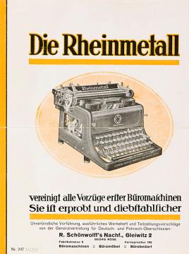 Prospekt für Schreibmaschine Rheinmetall Standard vereinigt alle Vorzüge erster Büromaschinen Sie ist erprobt und diebstahlsicher Nr. 247