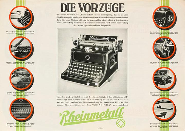 Faltprospekt für Schreibmaschine Rheinmetall 9 Die Schreibmaschine mit dem herausnehmbaren Herzen Nr. 492