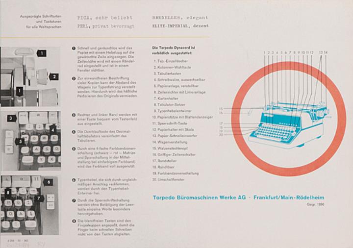 Faltprospekt für Schreibmaschine Torpedo Dynacord Nr. d 256.50.362