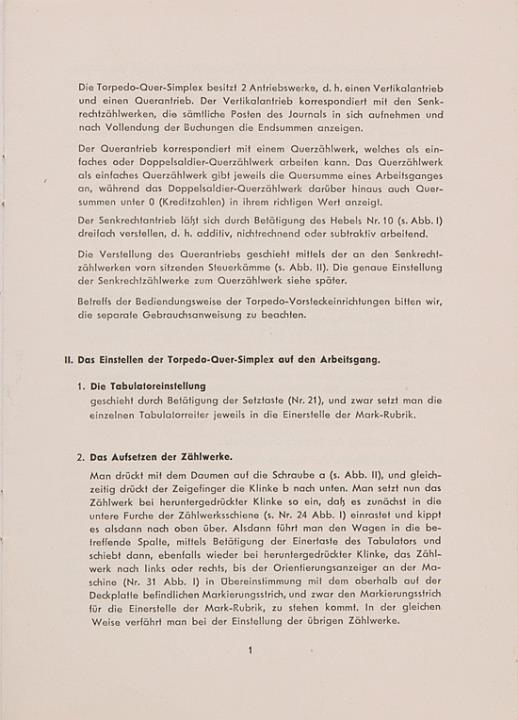 Gebrauchsanleitung für Torpedo-Buchungsmaschine Quer-Simplex Modell 24