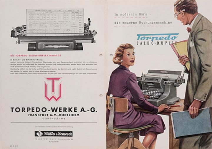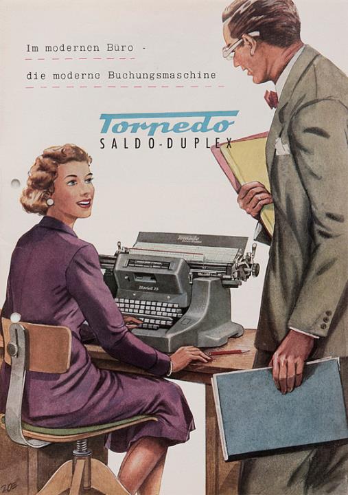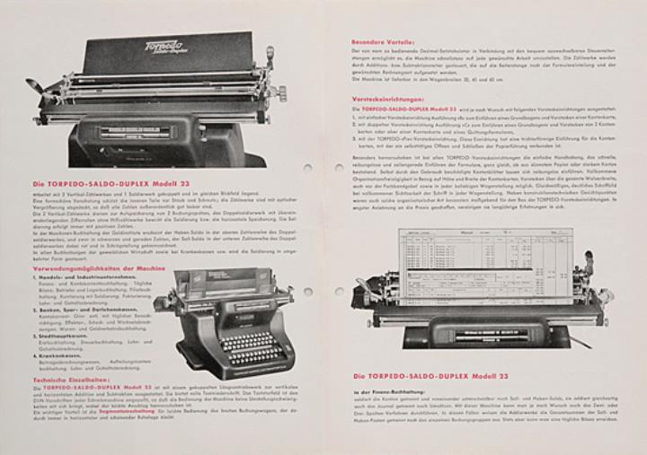 Faltprospekt für Schreib- und Buchungsmaschine Torpedo Saldo Duplex Im modernen Büro - die moderne Buchungsmaschine Nr. D 8.50.2.53
