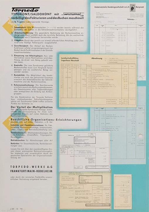 Prospekt für Schreib- und Fakturiermaschinen Torpedo Nr. d 209.10.759